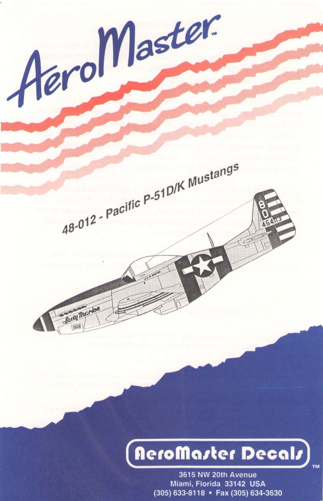 The first decal sheet that Aeromaster issued with VLR Mustangs was their Pacific P-51D/K Mustangs sheet (48-012).