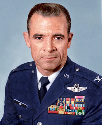 He became a career officer in the United States Air Force obtaining the rank of Colonel, and commanded 31st and 3rd Tactical Fighter Wings during the Vietnam War flying both F-100 Super Sabres and F-4 Phantoms.