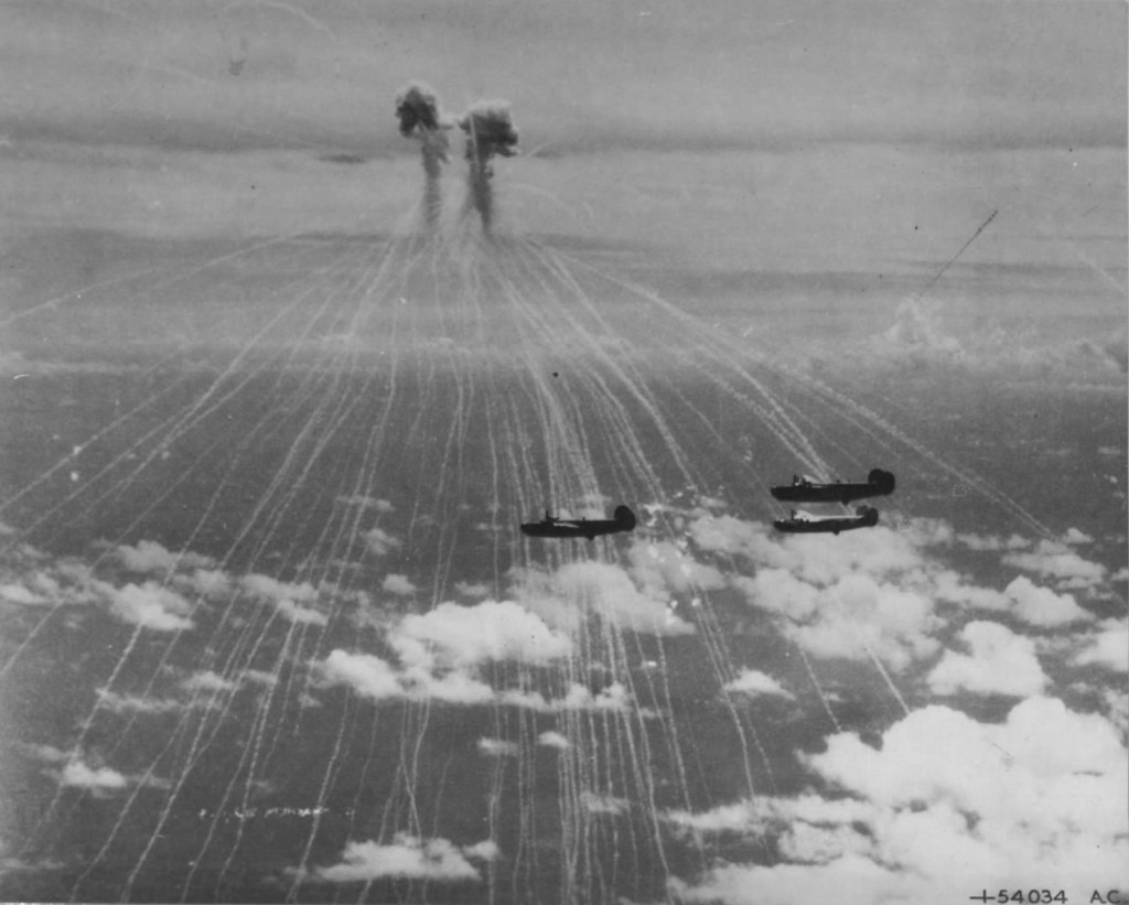 While very unsettling for bomber crews, the phosphorus air to air bombs were largely ineffective. More 7th Air Force B-24s were lost to ordinary flak than to phosphorus bombs.