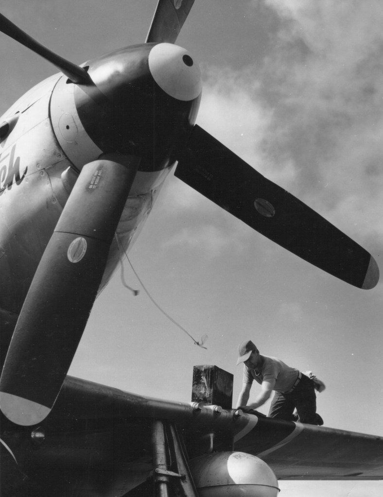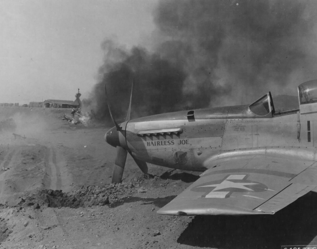 If you are going to build a 47th FS Mustang with the early markings and the flaps dropped, please note the two photos below. It appears that the 47th FS painted the bands on the wings with the flaps lowered.