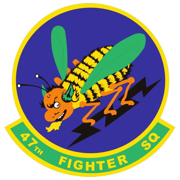 The squadron emblem was a devilish looking hornet breathing fire, riding a lightning bolt on a blue background.