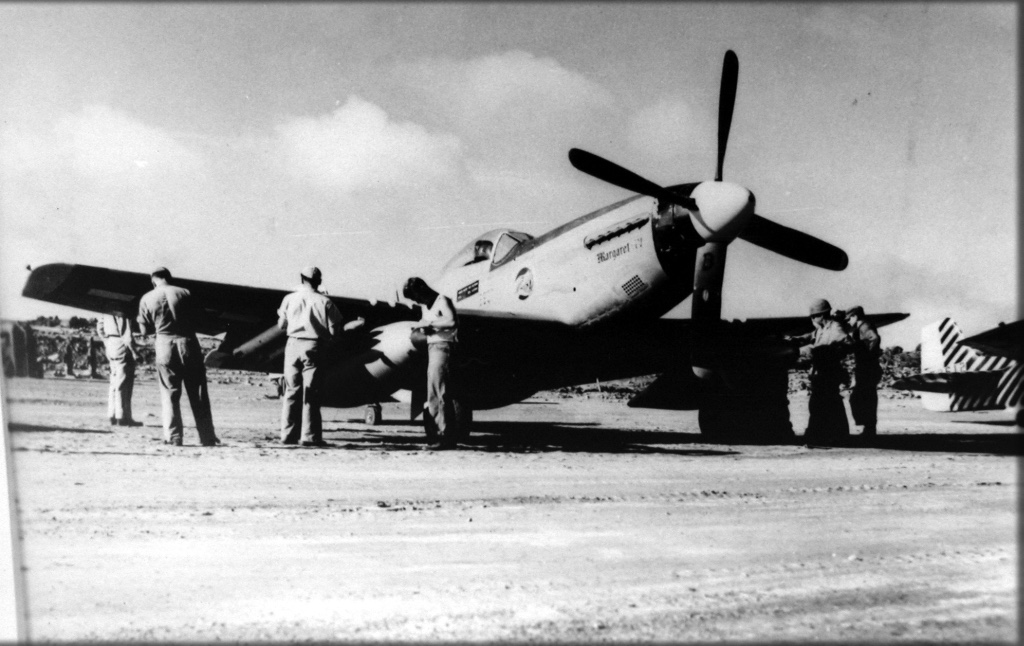 Major DeJarnette was credited with shooting down a Kawasaki Ki-61 ‘Tony’ on the June 10, 1945 escort mission to the Tokyo area. Lt. Col. Brown was credited with damaging a Nakajima Ki-84 ‘Frank’ on the July 19, 1945 fighter strike mission against targets in the Nagoya and Osaka areas. Both men survived the war.
