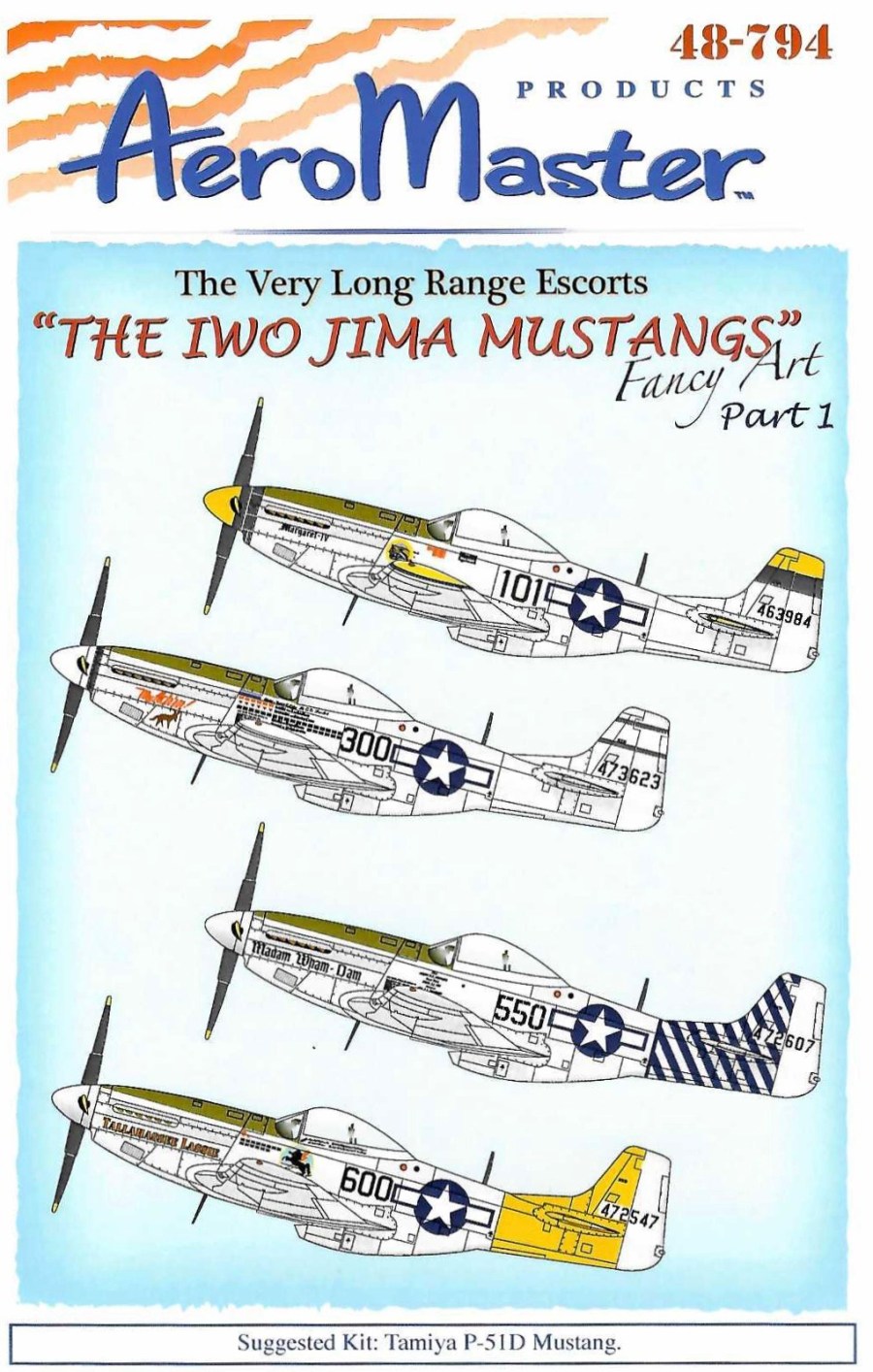 This is AeroMaster’s second decal sheet dedicated solely to Iwo Jima VLR Mustangs. Three additional sheets on Iwo Jima VLR Mustangs would be subsequently issued by AeroMaster under the series “The Very Long Range Escorts ‘The Iwo Jima Mustangs’ Fancy Art.”