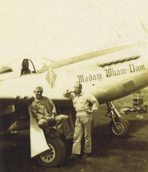 Please note the last two photos of “Madam Wham-Dam” and the color of the main landing gear legs. They are considerably darker than the main landing gear legs on either Major Tapp’s “Margaret – IV” or Major Crim’s “My Achin! [Ass]” which suggests that they have been painted. I have also seen what appears to painted landing gear legs in pictures of 21st Fighter Group Mustangs.