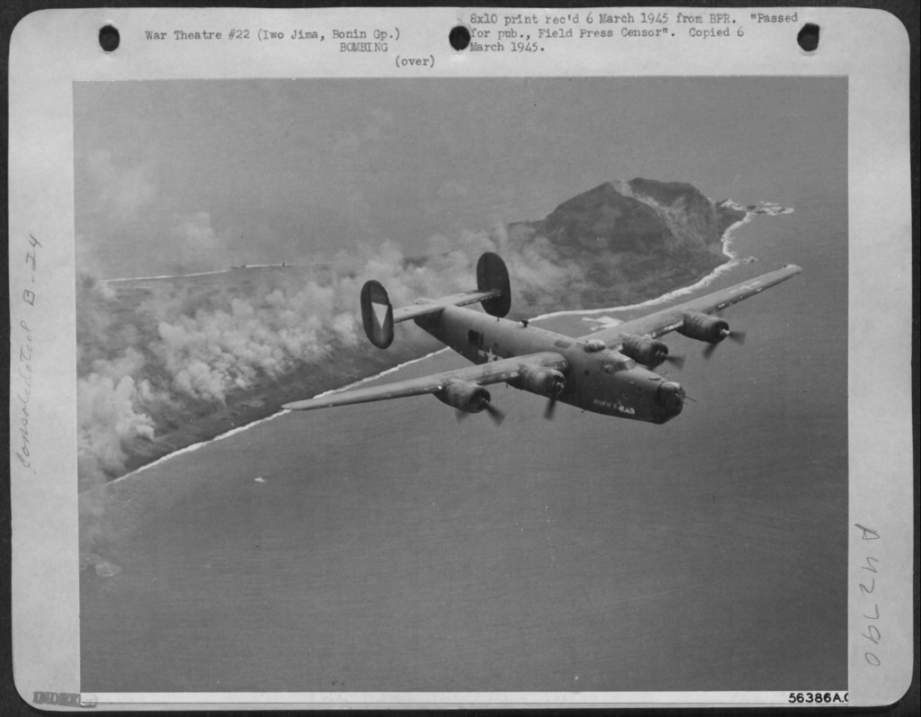 Starting on August 10, 1944, the 7th Air Force B-24 Liberators bombed the airfields and troops on Iwo Jima continuously up to the invasion. The goal was not necessarily to bomb the Japanese forces on Iwo Jima into submission, but to disrupt and neutralize the Japanese ability to strike American airfields in the Marianas from Iwo Jima.