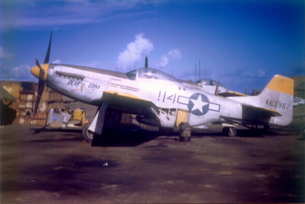 1st Lieutenant Frederick A. Bauman’s North American P-51D Mustang 114 “Dear Edna” on Iwo Jima (Mark W. Stevens/7th Fighter Command Association)