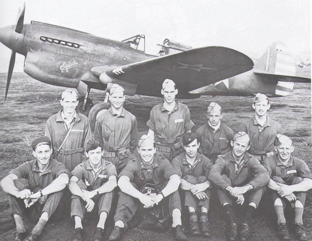 Captain Robert R. Down of 47th FS/15th FG with ground crew (Mark Stevens/7th Fighter Command Association)