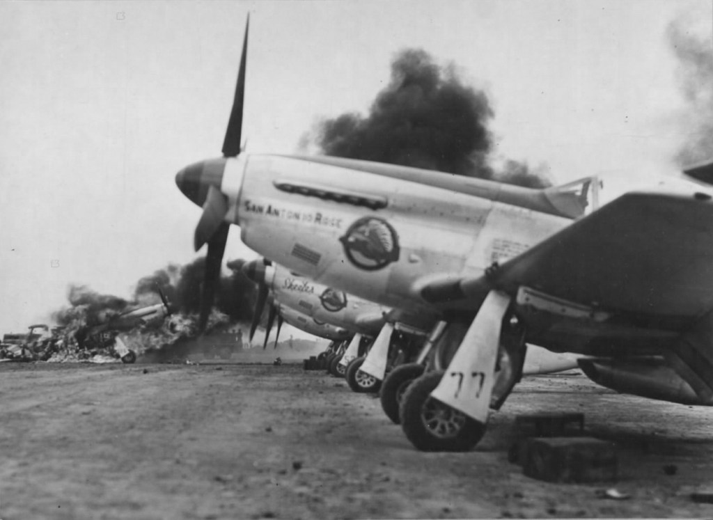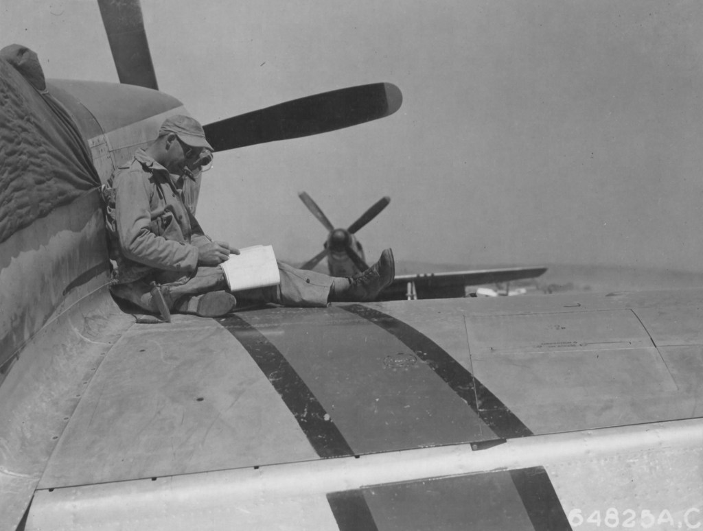 If you are going to build a 47th FS Mustang with the early markings and the flaps dropped, please note the two photos below. It appears that the 47th FS painted the bands on the wings with the flaps lowered.